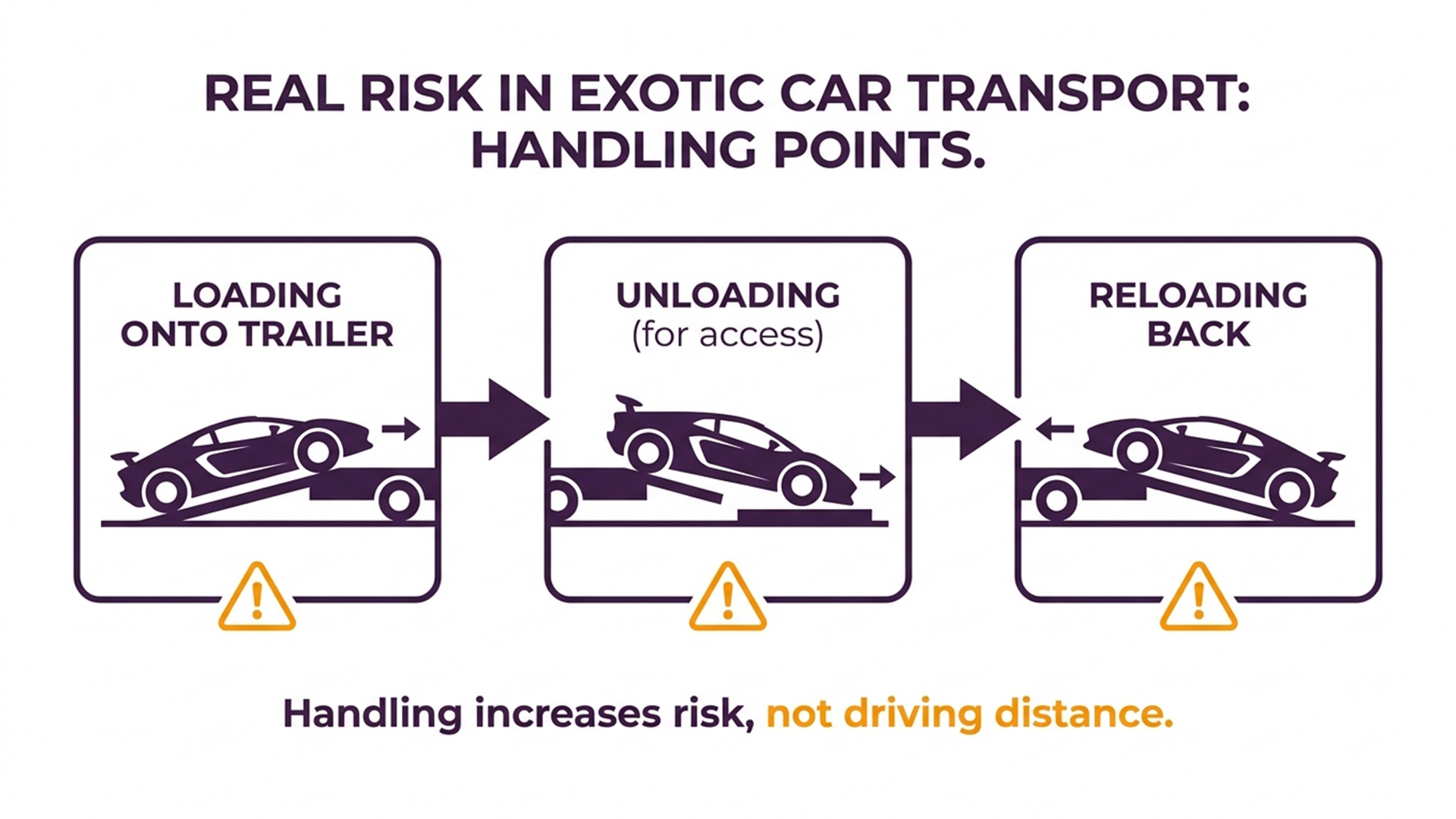 The actual danger happens entirely during the physical handling process. Every single time a guy drives a car up a ramp or backs it down a ramp, there is a chance for something to bump or scrape.